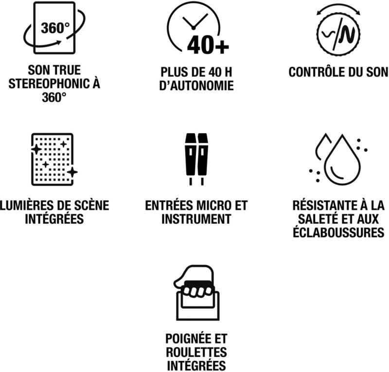 - Enceinte Lumineuse, Avec poignée, Avec roulette, Bluetooth, Prise micro