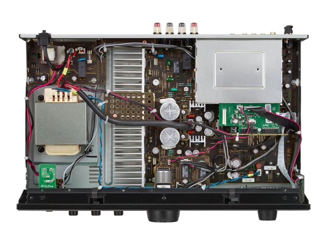 - Connecteurs : Casque (stéréo téléphonique 6,3 mm) - avant ¦ 4 x entrée de ligne audio (phono RCA x 2) - arrière ¦ Sortie phono (phono RCA x 2) - arrière ¦ Sortie de ligne audio (phono RCA x 2) - arrière ¦ Sortie caisson de basses (RCA) - arrière ¦ 2 x entrée SPDIF (TOSLINK) - arrière ¦ Entrée SPDIF (RCA) - arrière ¦ Entrée infrarouge - arrière ¦ Sortie infrarouge - arrière ¦ 2 x sortie pour haut-parleurs (banane/fourchette x 2) - arrière