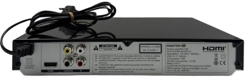 Lecteur DVD ESSENTIELB Color Noir 2 (réf : 8011709)