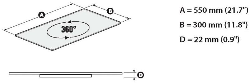 Le + : Plateau rectangulaire rotatif à 360° en verre fumé noir