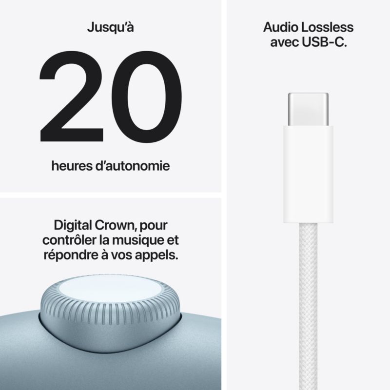 - Autonomie avec ANC : jusqu'à 20h