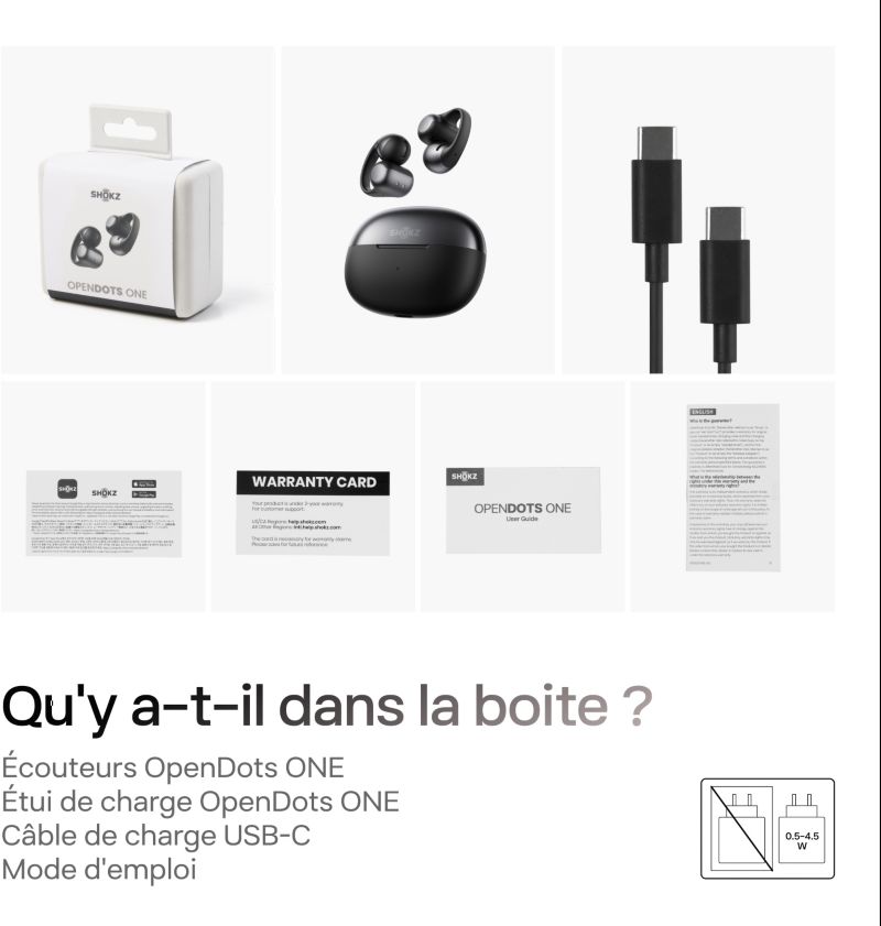 - Charge rapide des écouteurs : 10min de charge pour 2h d'écoute