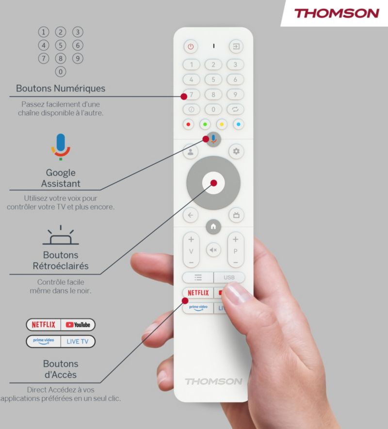 - Type de télécommande : Smart avec pavé numérique