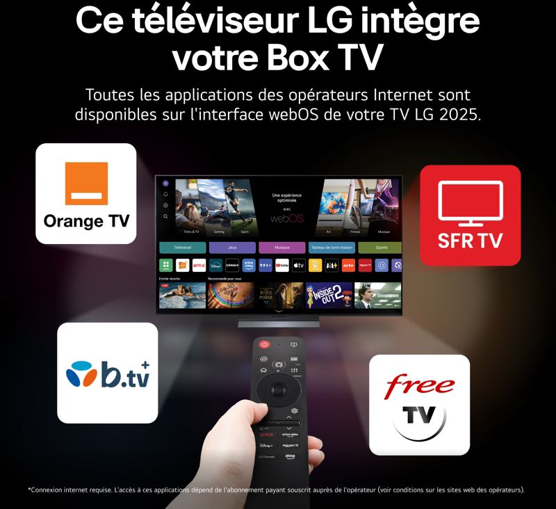 - Le saviez-vous ? : la box TV est intégrée via une application ce qui permet d'accéder aux contenus et services directement depuis le téléviseur