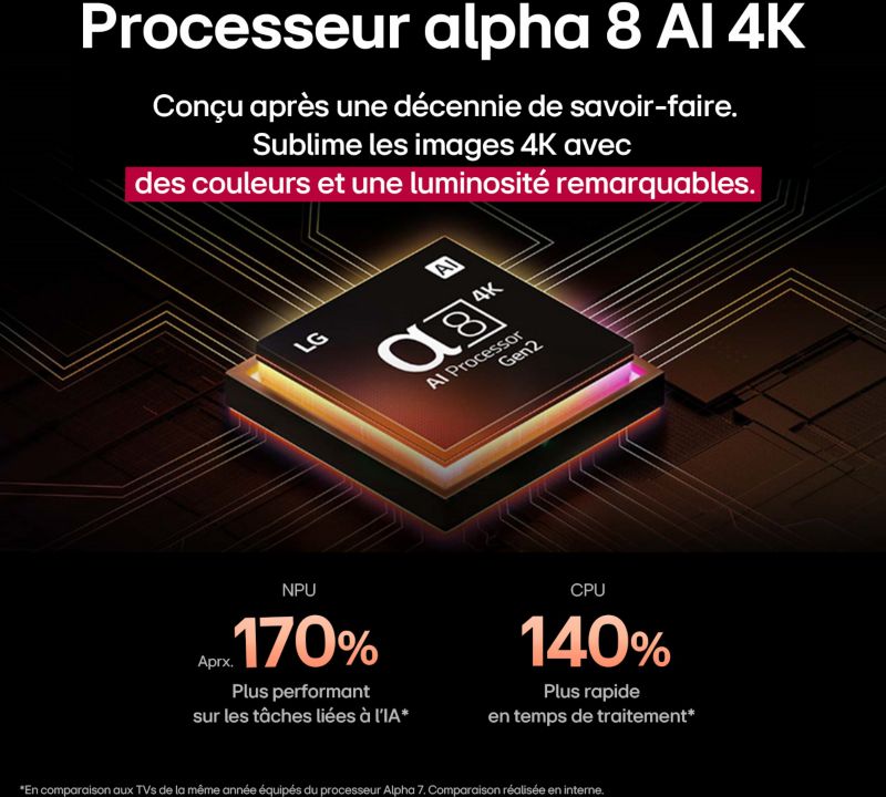 - Type de processeur : Alpha 8 AI Gen2