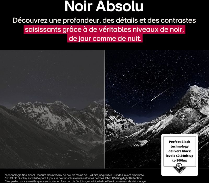 Le + : Luminosité exceptionnelle, noir absolu et performances ultimes, découvrez le meilleur de LG AI TV