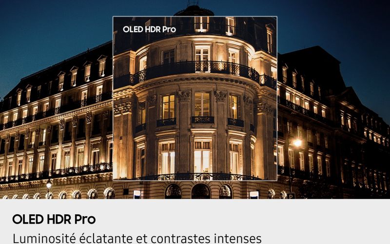 - Technologie : OLED, garantit aux images un contraste élevé, des couleurs réalistes et un noir profond