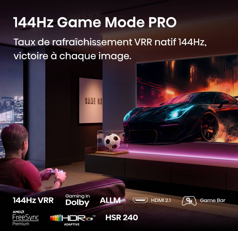 - VRR : oui, permet de synchroniser les fréquences de rafraichissement d'image de la télévision avec la plateforme de jeux vidéo pour une image fluide et sans aucune saccade