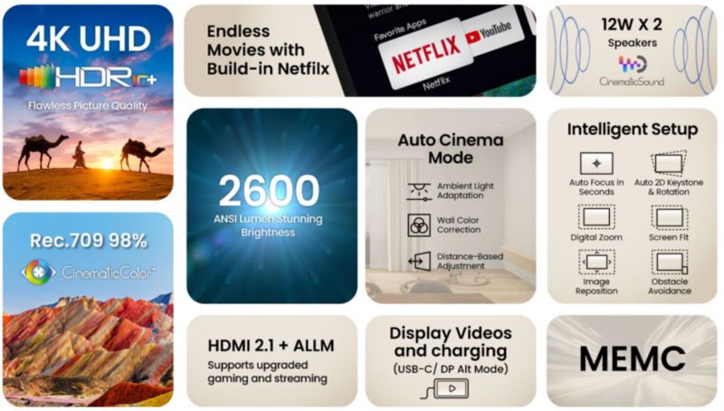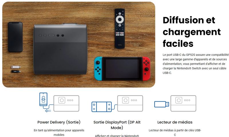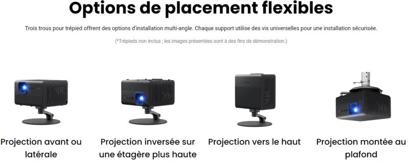 - Mode Eco : oui, réduit la luminosité de la lampe et le bruit du ventilateur pour économiser de l'énergie tout en prolongeant la durée de vie de la lampe