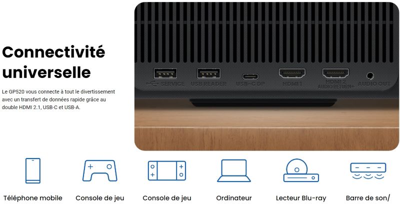 - HDMI ARC (audio return chanel) : Oui, permet d'utiliser la télécommande de votre vidéoprojecteur pour allumer et régler le volume de votre ampli, barre de son, console de jeu branché en HDMI disposant également de la norme ARC