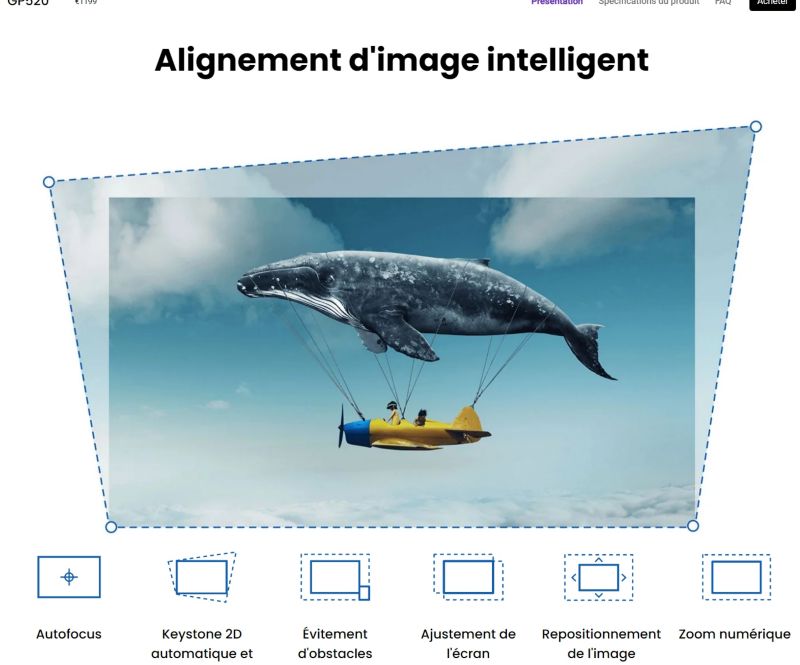 - Le saviez-vous : permet de corriger la déformation de l'image (en forme de trapèze) lorsque celle-ci est projetée de biais